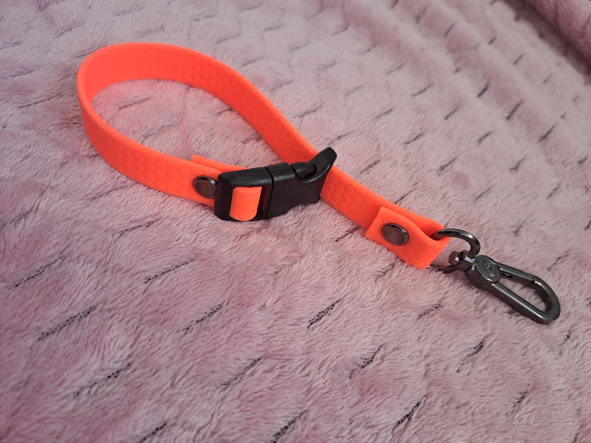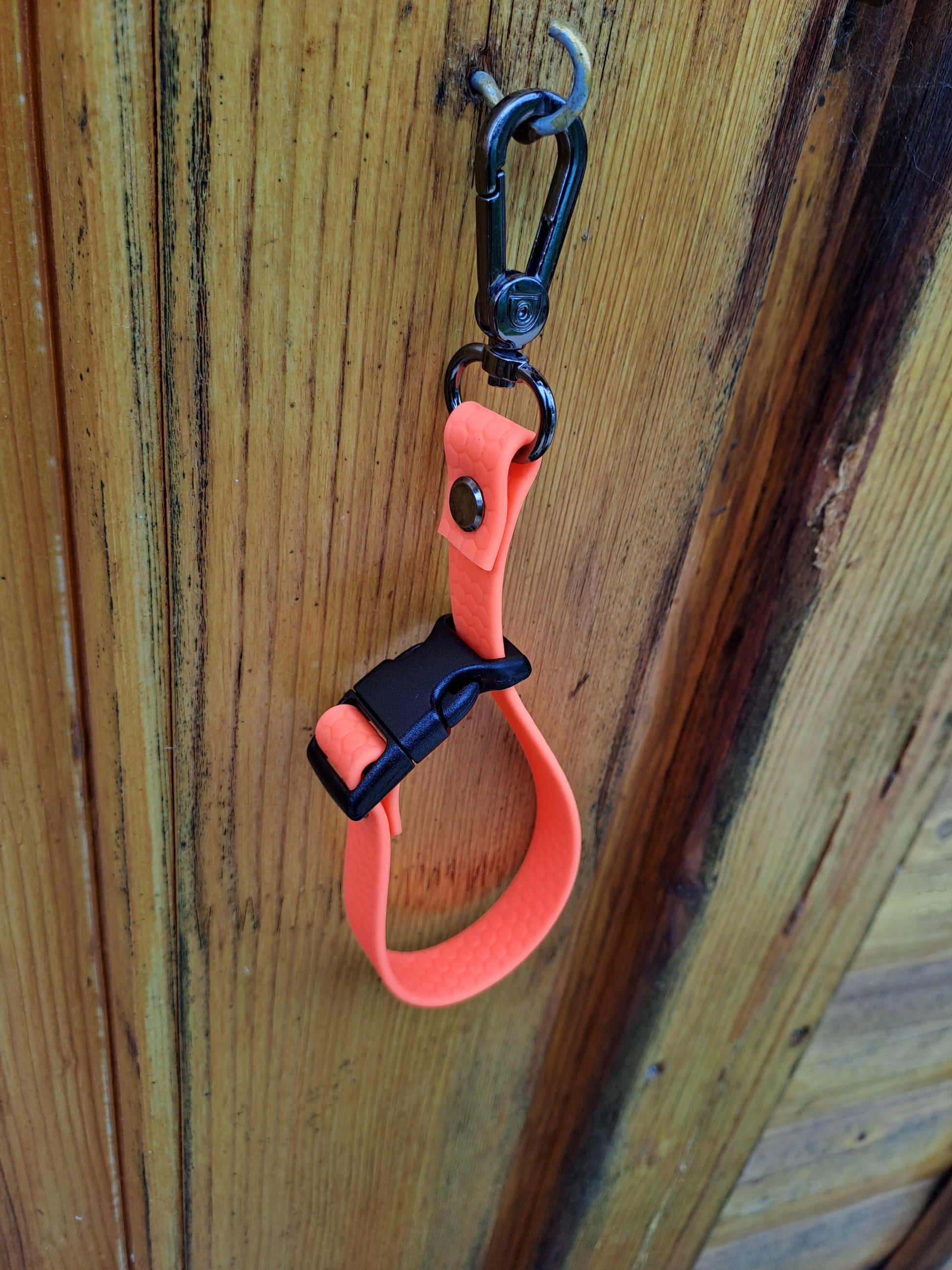 Quick-release keeper made by Dasher's Design from waterptoof webbing that is lightweight, waterproof, odor-proof, antimicrobial, and easy to clean. Your gear will hold up over years of use and get softer and more pliable.