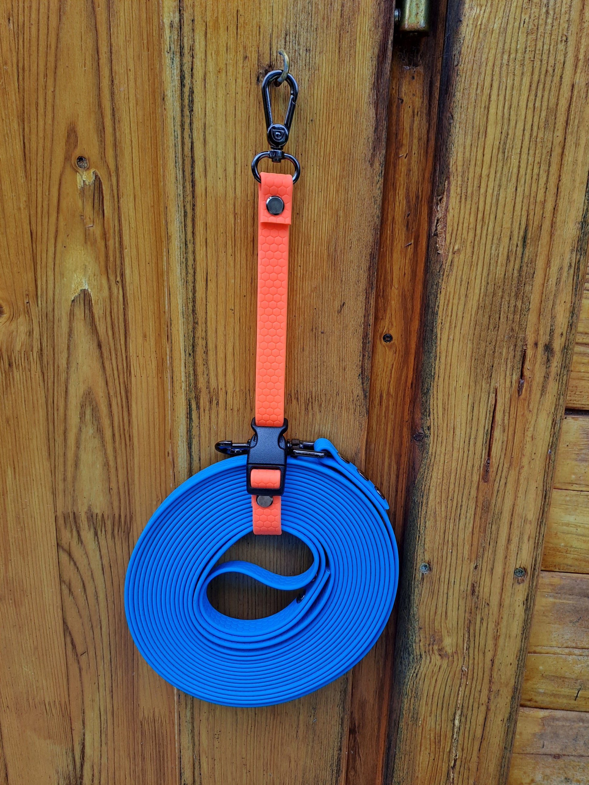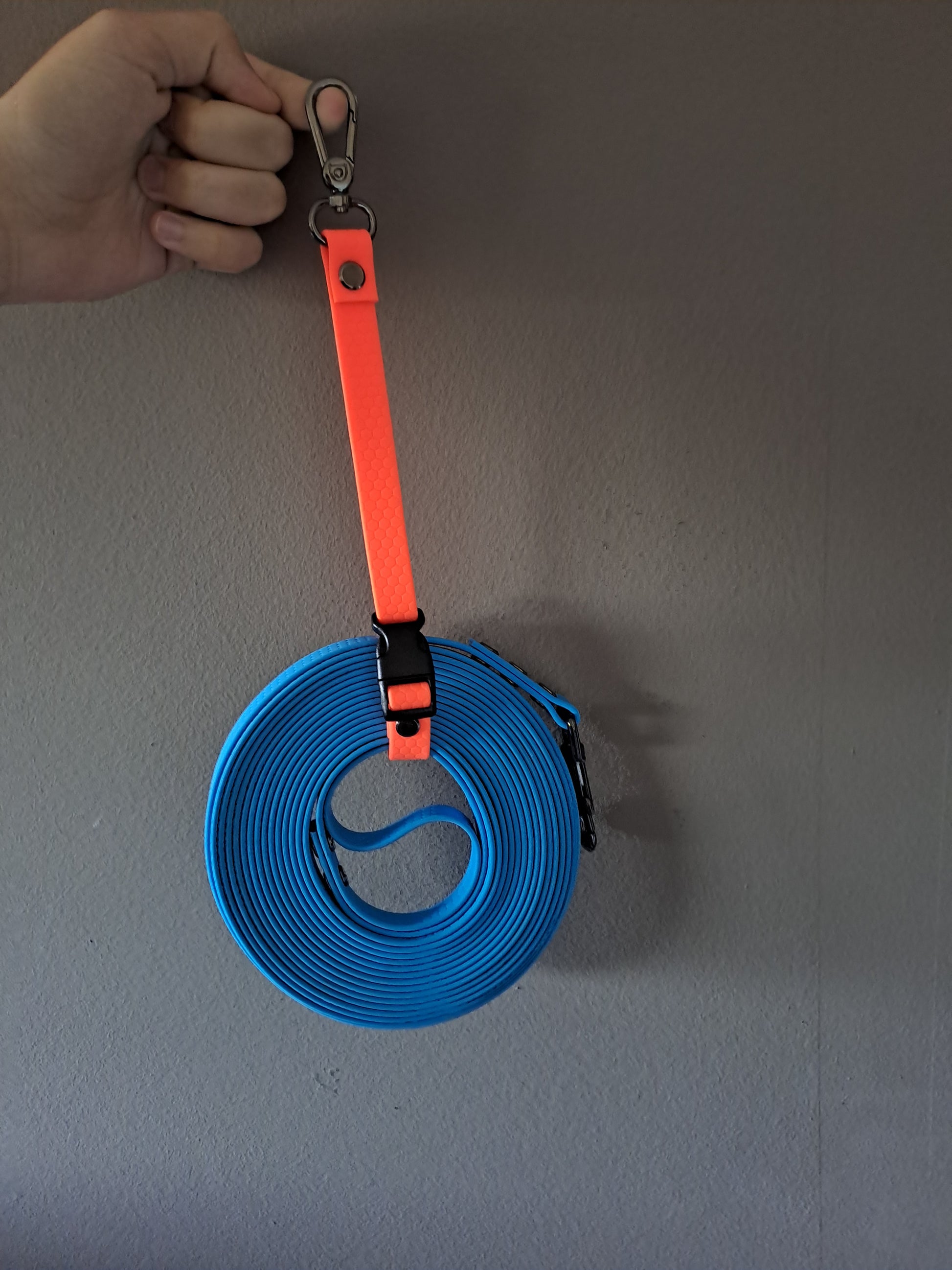 The moveable, quick-release buckle allows you to cinch the buckle down for a secure fit and easily clip or unclip your long line when needed. Use for storage at home, in your car, on the trail, or clipped to your leash!